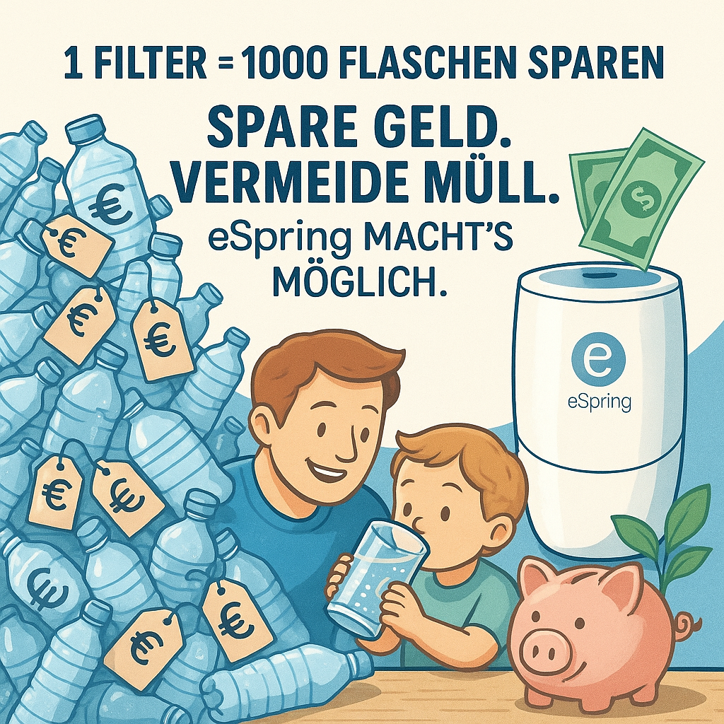 Wasser kaufen oder filtern – diese Frage stellt sich in immer mehr Haushalten. Wer regelmäßig Wasser in Flaschen kauft, produziert nicht nur riesige Mengen an Plastikmüll, sondern zahlt auch einen hohen Preis – buchstäblich. Der eSpring™ Ersatzfilter ist die clevere Alternative: nachhaltig, sparsam und effektiv. Hier erfährst du, wie du mit einem einzigen Filter über das Jahr hinweg Geld sparst und gleichzeitig die Umwelt schützt.